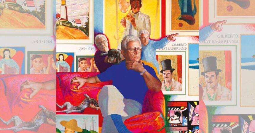 Na obra de Glauco Rodrigues, o colecionador Gilberto Chateaubriand é retratado na frente de oito pinturas de seu acervo, assinadas por grandes nomes como Tarsila do Amaral, Lasar segall, Cândido portinari, entre outros.