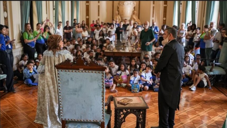A Assembleia Legislativa do Estado do Rio de Janeiro (Alerj) transformou o Palácio Tiradentes em palco para uma verdadeira viagem no tempo. Nesta quinta-feira (13), o público foi convidado a reviver a Proclamação da República por meio de uma visita teatralizada gratuita, que uniu educação, arte e cidadania. Mais de 50 alunos participaram apenas na primeira das seis sessões do dia, mergulhando na transição do Brasil do regime monárquico para o republicano.