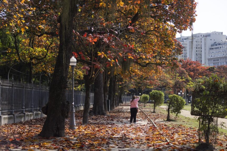 — Os hormônios vegetais induzem a redução da clorofila, transformando-a em nitrogênio, que vai ser aproveitado pela própria árvore durante a brotação de novas folhas. A redução da clorofila permite que outros pigmentos, que são esses avermelhados, como os carotenos, fiquem mais à mostra. As folhas caem, mas logo que voltar a chover, entre aspas, a árvore identifica e dispara um mecanismo de produção de brotos de folhas novas. Aí, voltam as folhas verdes — conta, lembrando que normalmente a floração da amendoeira ocorre no verão, com dias quentes e de chuvas.