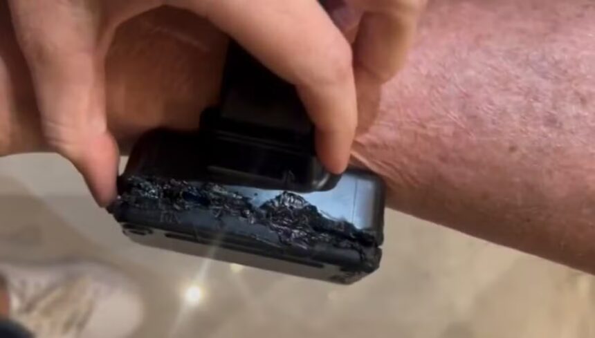Em vez disso, o relatório aponta que o equipamento possuía “sinais claros e importantes de avaria”, incluindo marcas de queimadura em toda a circunferência, especialmente na região de fechamento do case.