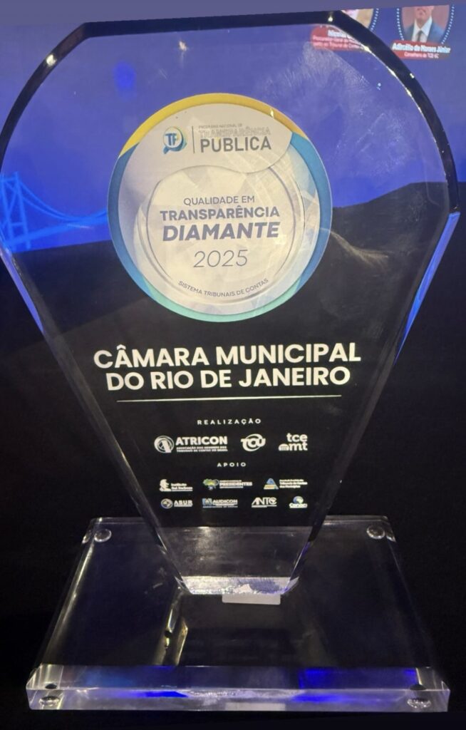 A Câmara Municipal do Rio de Janeiro recebeu, pela quarta vez consecutiva, o Selo Diamante do Radar da Transparência Pública, certificação concedida pela Associação dos Membros dos Tribunais de Contas do Brasil (Atricon). O anúncio foi feito nesta quinta-feira (4), durante o IV Congresso Internacional dos Tribunais de Contas, realizado em Florianópolis.