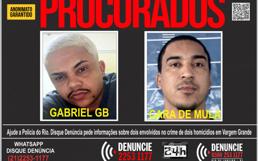 Rio – Um cartaz do Disque Denúncia foi divulgado, nesta quarta-feira (24), pedindo informações para localizar e prender Gabriel da Silva Alves, de 31 anos, ligado ao Terceiro Comando Puro (TCP). Conhecido como GB, ele é o chefe do tráfico de drogas em Vargem Grande, Zona Sudoeste do Rio, e está envolvido em dois assassinatos praticados em 2024 e 2025.