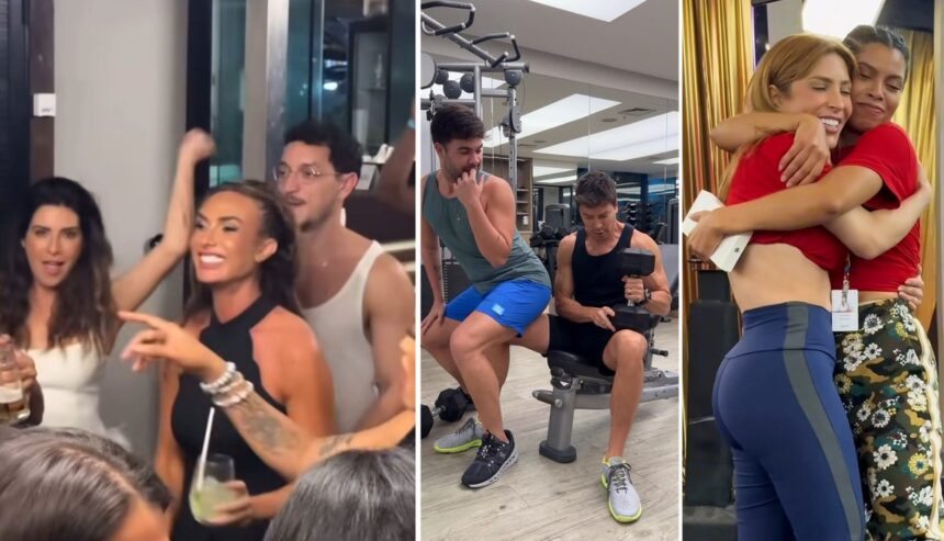 Quem acompanha tudo em tempo real é o influenciador Alvaro, que grava desde a rotina no hotel em frente à Praia da Barra, onde o elenco de fora do Rio se hospeda, até os ensaios nos Estúdios Globo, que acontecem aos sábados, às terças e às quartas, das 10h às 20h30. Outro dia, ele divertiu o público ao postar um vídeo na academia do hotel, quando se sentou no colo de Rodrigo Faro durante o treino.