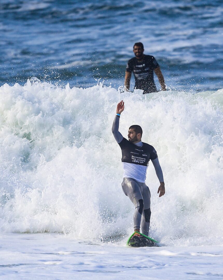 \”Foi emocionante! Eu, em algum momento, conversando com o fisioterapeuta, pensei em abandonar a competição, porque daqui a pouco tem a temporada de Nazaré e eu não queria me machucar mais. Rolou uma possibilidade de usar uma regra, mas… Quando eu tava entrando na água, eu olhei pro Chumbo e falei: ‘mano, não vamos usar a regra. Eu vou dar o meu máximo. Vou surfar com dor mesmo’. E ele falou: ‘mano, bora!’\”, contou Scooby.