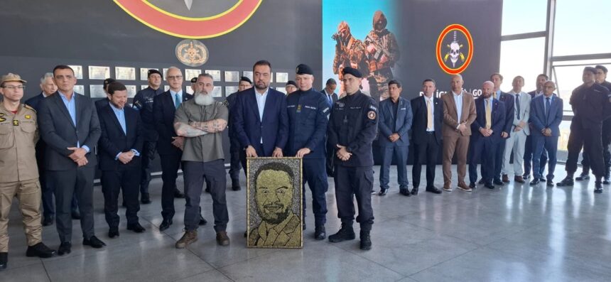 Cláudio Castro ganha retrato feito com cápsulas de bala em evento na sede do Bope