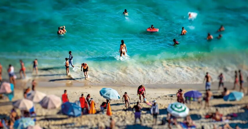 O Rio de Janeiro é protagonista de Sonhos Cruzados, exposição da Casa Proeza com vinte fotografias. Sob o olhar de Claudio Edinger, imagens aéreas conjugam paisagem, arquitetura e lifestyle. O Corcovado, a Praia do Leblon (foto) e a Igreja da Penha estão entre os cenários. Já pelas lentes de Betina Samaia, registros noturnos que tensionam real e onírico. A curadoria é de Ana Fortes e Rogério Reis.