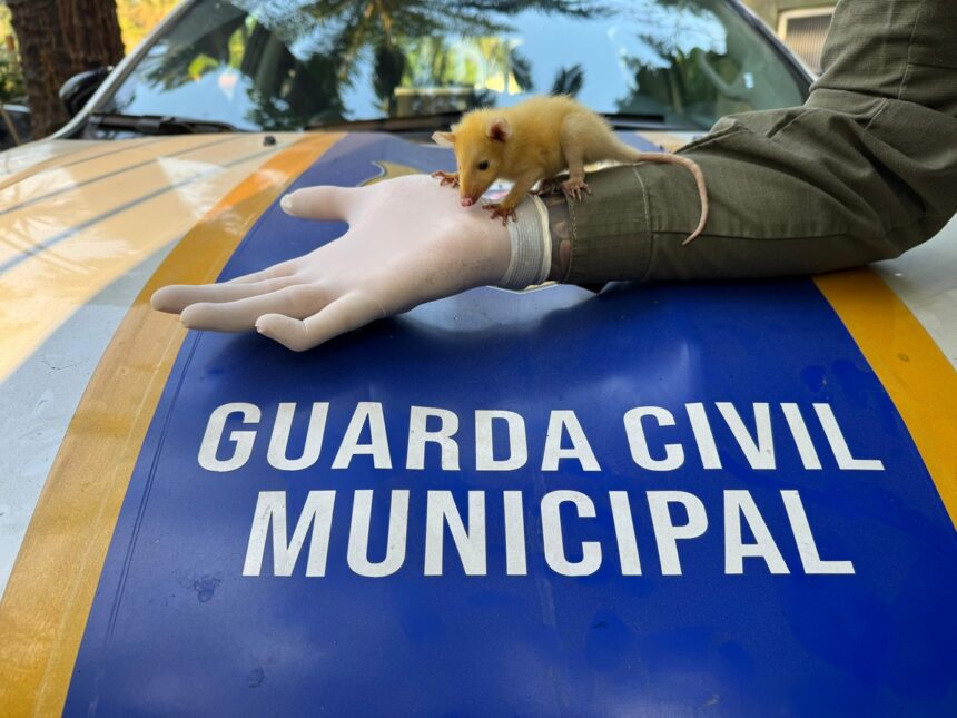 Uma espécie rara de gambá foi resgatada, nesta sexta-feira (8), no Fonseca. A equipe da Coordenadoria de Meio Ambiente (CMA) da Guarda Municipal de Niterói foi acionada pelo número 153, do Centro Integrado de Segurança Pública (CISP) da Prefeitura de Niterói, e realizou o resgate de um gambá leucístico bebê, de apenas 54 gramas. O animal deve ter em torno de um mês e meio de vida e está sob cuidados veterinários para ser nutrido e depois fazer sua adaptação para ser solto em área de proteção ambiental.