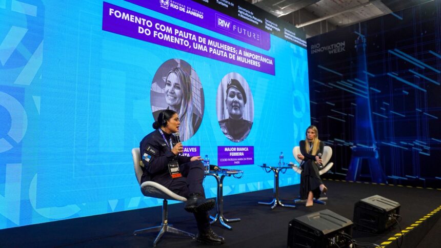 No Palco Kobra do Rio Innovation Week, major Bianca apresentou os avanços tecnológicos que fortalecem o programa; presidente da Faperj, Caroline Alves, destacou a importância de fomentar soluções inovadoras para proteger vidas
