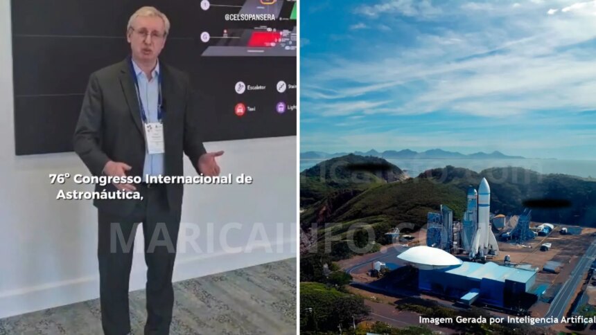 “Hoje, nós chegamos aqui no primeiro dia do evento internacional sobre espaço e astronáutica. Estamos, é… começando a fazer o– as nossas conversas, tra-trabalhando junto tanto com as autoridades, é, de cada estado, tamo buscando a indústria, tamo buscando os– as academias. Nós tamo buscando todas as melhores soluções para que o nosso projeto, que está sendo desenvolvido em Maricá, tenha os melhores caminhos e o nosso– maior chance de sucesso possível. Continuaremos nessa-nessa sequência de conversas e vamos tentar trazer tanto a– é, aspectos relativos à fabricação de motores, fabricação de combustíveis, trackeamento, é… monitoramento de-de atividades espaciais de lançamento. Certamente, a gente vai conseguir trazer aí uma-uma perspectiva. Nós devemos progredir daqui pra frente, para em curto espaço de tempo nós darmos passos realmente concretos para a nossa base de lançamento de satélite em Maricá.”