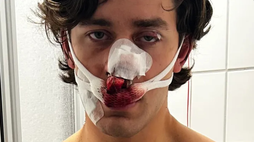 John Rudat, 21, foi cortado no rosto com uma faca enquanto tentava impedir um ataque a um bonde alemão