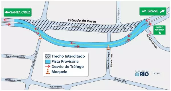 Um trecho da Estrada da Posse, entre as ruas Abel Ferreira e Valdir Azevedo, será interditado nesta sexta-feira (7) devido à nova fase das obras do Anel Viário de Campo Grande, voltada à construção dos acessos ao túnel sob o Morro Luiz Bom. Durante o fechamento, a CET-Rio vai direcionar o tráfego para a nova pista já construída, evitando alterações no fluxo principal da via.