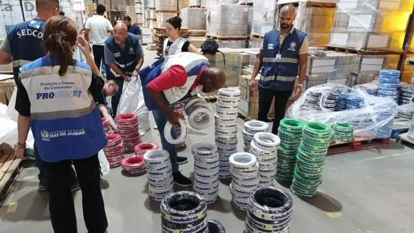 Na quarta-feira (26), a Secretaria de Estado de Defesa do Consumidor (Sedcon) e o Procon Estadual (Procon), em parceria com o Sindicato da Indústria de Condutores Elétricos (Sindicel), apreenderam mais de 100 mil metros de cabos elétricos. Os produtos vendidos por diversas lojas estavam fora dos padrões exigidos pelas especificações técnicas.