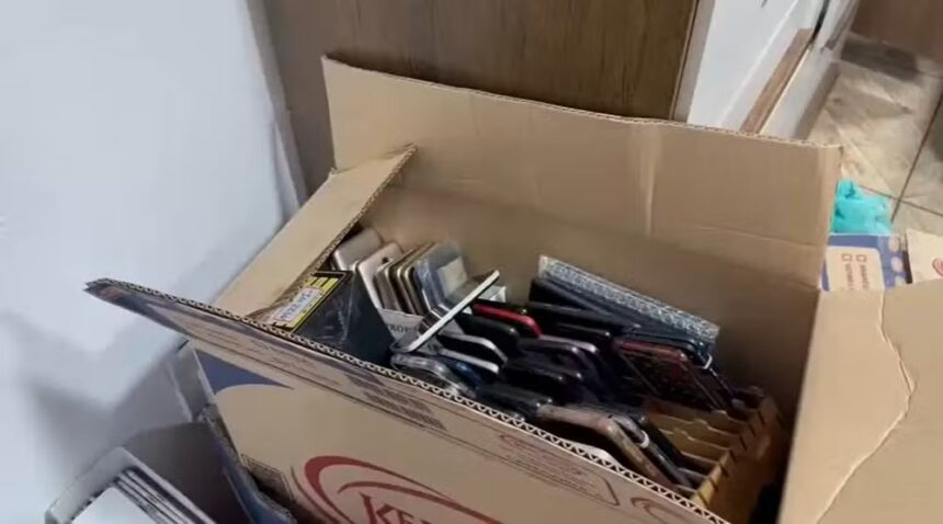 De acordo com a polícia, vários endereços alvo das buscas funcionam como lojas, boxes e quiosques de revenda de celulares.