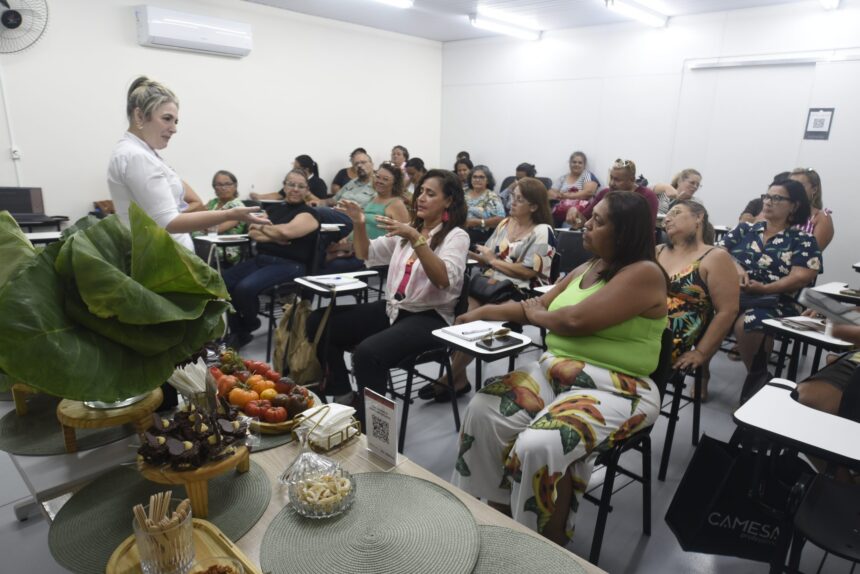 A Prefeitura de Maricá, por meio das secretarias de Turismo, de Comércio, Indústria e Mercado Interno, e de Trabalho e Emprego, em parceria com a Rota Gastronômica, capacitou empreendedores do setor de bares e restaurantes com o minicurso “Tendências na gastronomia com insumo local”. Dezenas de participantes ouviram dicas da chef Ana Paula Almeida sobre como tornar seus pratos e negócios únicos, atrelando-os a ingredientes locais.