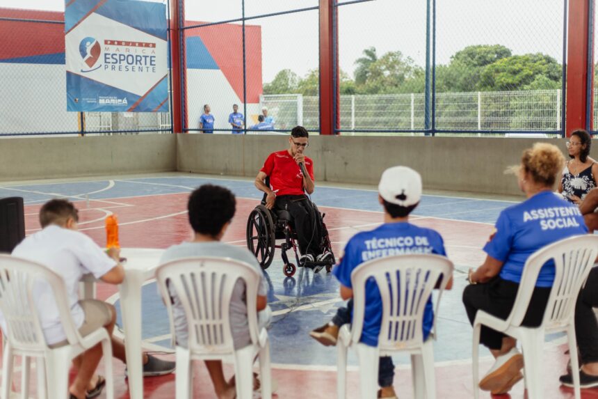 A Prefeitura de Maricá, por meio da Secretaria de Esportes, realizou na tarde desta segunda-feira (22/09) mais uma edição do projeto “Simplesmente Um Olhar” na Arena Mumbuca. O evento teve como destaque uma roda de conversa com a equipe multidisciplinar da Secretaria e os responsáveis pelos alunos PCD atendidos pelas atividades esportivas do município.