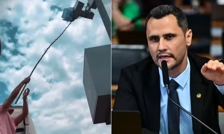 “Vocês gostam de ferrar o povo? Agora vem aqui tirar a camisa”, provocou o parlamentar, que contou com a ajuda de um caminhoneiro para alcançar o equipamento. Usando um pedaço de pau, Cleitinho cobriu o radar e exigiu que autoridades instalem uma placa de identificação antes de removerem a camiseta. “Coloquem uma sinalização aqui também. Aí vocês tiram a blusa”, disparou.