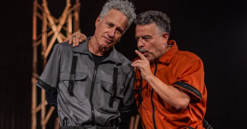 No centro da encenação brilham Ísio Ghelman e Gustavo Gasparani. Gustavo funciona como herói mítico ao idealizar o espetáculo. A dupla apresenta um trabalho vocal raro nos palcos atuais: vozes potentes, redondas, harmônicas — sem nunca recorrer ao grito. Mesmo nos momentos de indignação, conflito ou confronto ideológico, mantêm projeção impecável, timbre limpo e palavra nítida.