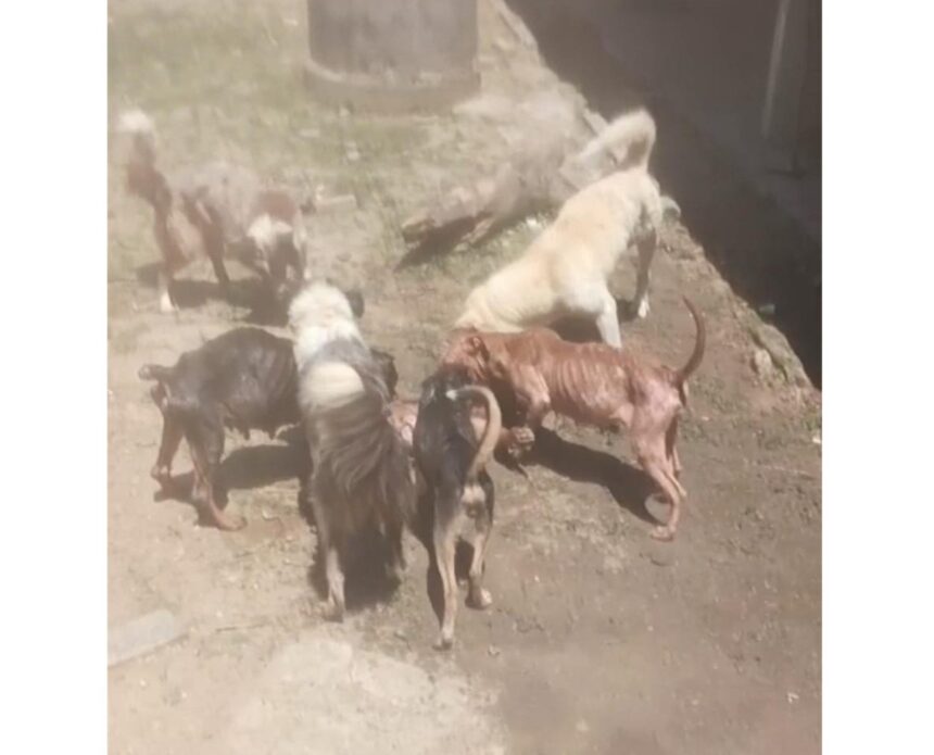 Cães foram encontrados com sinais de desnutrição, feridas e sem acesso à comida e água.