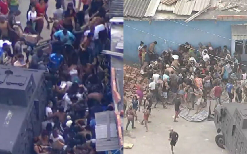 AGORA: O povo invadiu o blindado da polícia e roubou a carga que tinha sobrado no Complexo da Pedreira. #BalançoGeralRJ